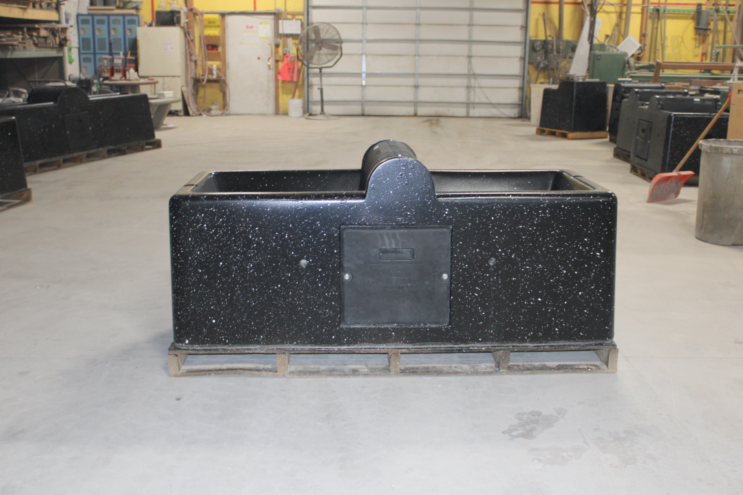 The E-Fount 3465-E model serves up to 100 head of beef or 40 dairy cows, with a 20-gallon (76-kilogram) capacity. It features two 9.5-inch openings with 10-inch ball closures and measures 36 inches long, 24 inches wide and 18 inches tall. Weighing 79 pounds (36 kilograms), it is designed for practical handling and installation.